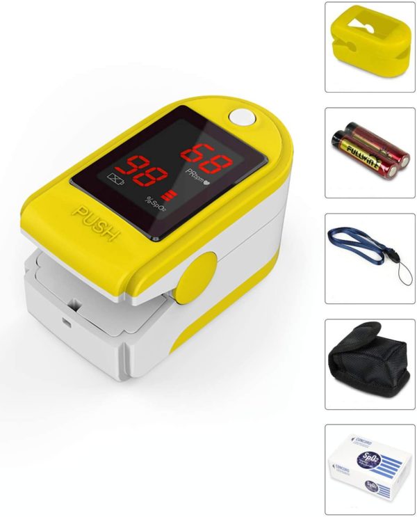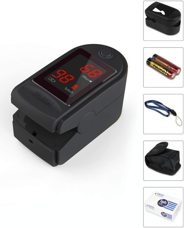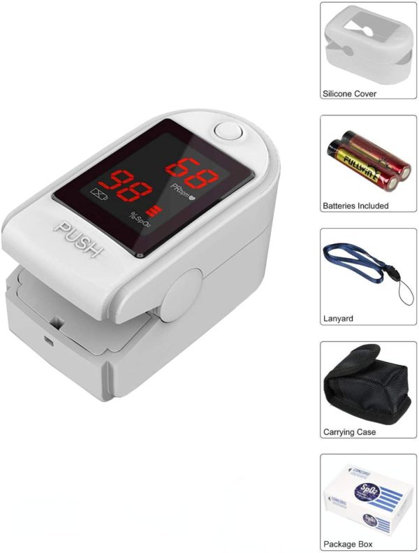 Concord Basics Blue Fingertip Pulse Oximeter Blood Oxygen Saturation Monitor with Carrying Case, Batteries, Silicone Cover and Lanyard