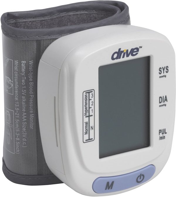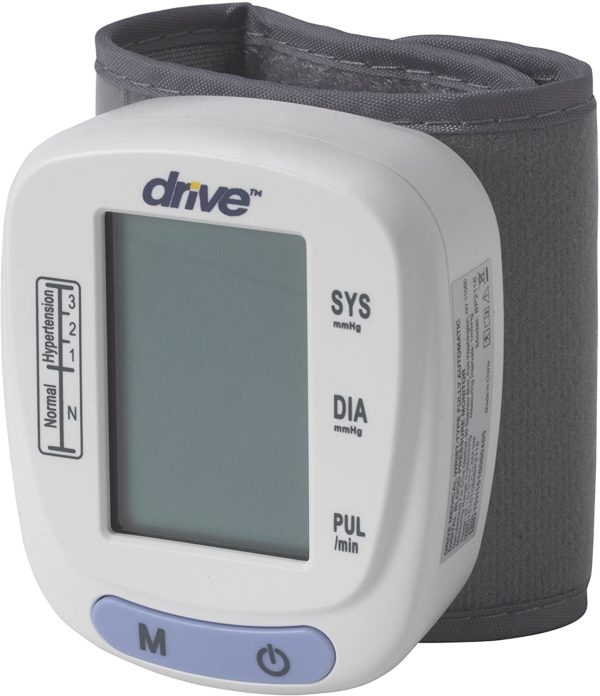 Get professional accuracy with a convenient and easy-to-use digital wrist blood pressure monitor from Drive Medical. Its large display makes reading easy, and the memory recall function holds up to 120 readings making it great for multiple users. The monitor is also able to provide an accurate pulse rate reading, eliminating the need for a separate device. The unit is lightweight to go anywhere and features an auto-off function to preserve battery life.
