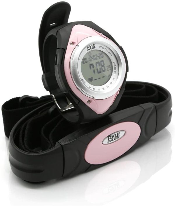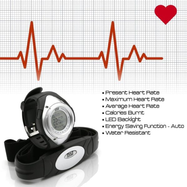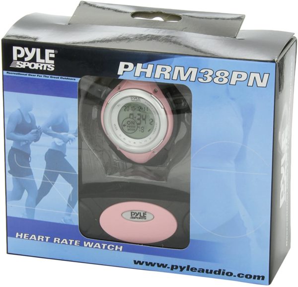 PyleSport Model : PHRM38SLHeart Rate Monitor WatchHeart Rate Monitor Watch W/Minimum, Average Heart Rate, Calorie Counter, and Target Zones(Silver Color) Time/DatePresent Heart RateMaximum Heart RateAverage Heart RateTarget Zone Setting1/100 sec StopwatchCalories BurntDaily AlarmUser SettingLED BacklightEnergy Saving Function – AutoDisplay OffWater Resistance: 33 Feet / 10 Meters / 1 ATMTotal Wrist Strap Length: 200mm